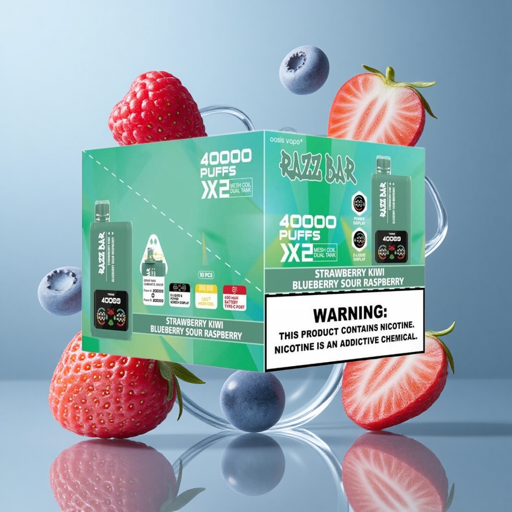 Razz Bar 40000 Puffs E-cigaret Jordbær Kiwi_Blåbær Sur Hindbær Med 650 Mah Batteri