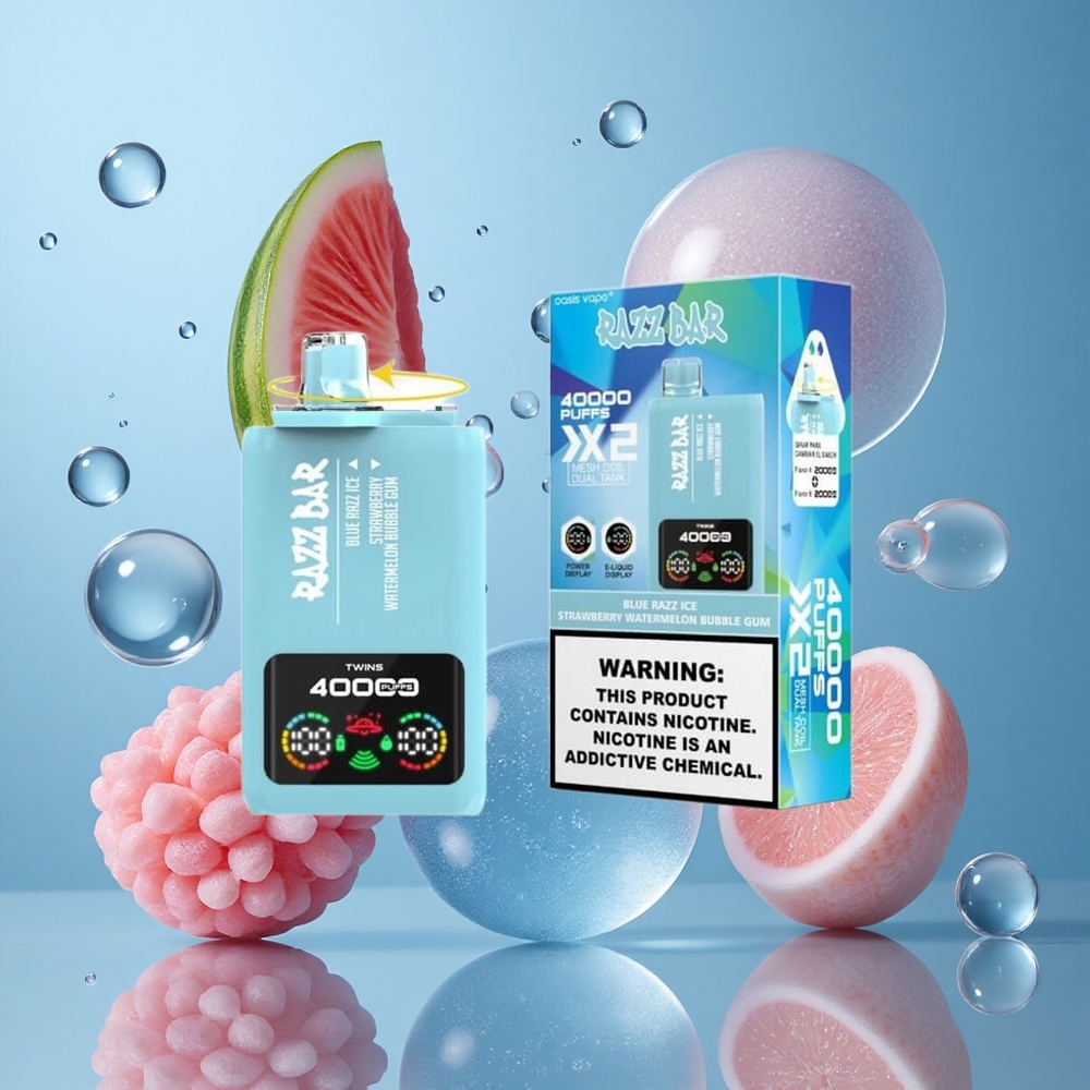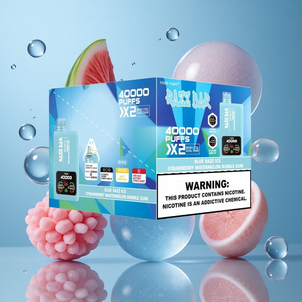 Razz Bar 40000 Puffs Engangs Vape Blå Hindbær Is-Jordbær Vandmelon Tyggegummi med 650 Mah Batteri