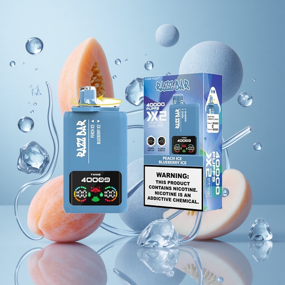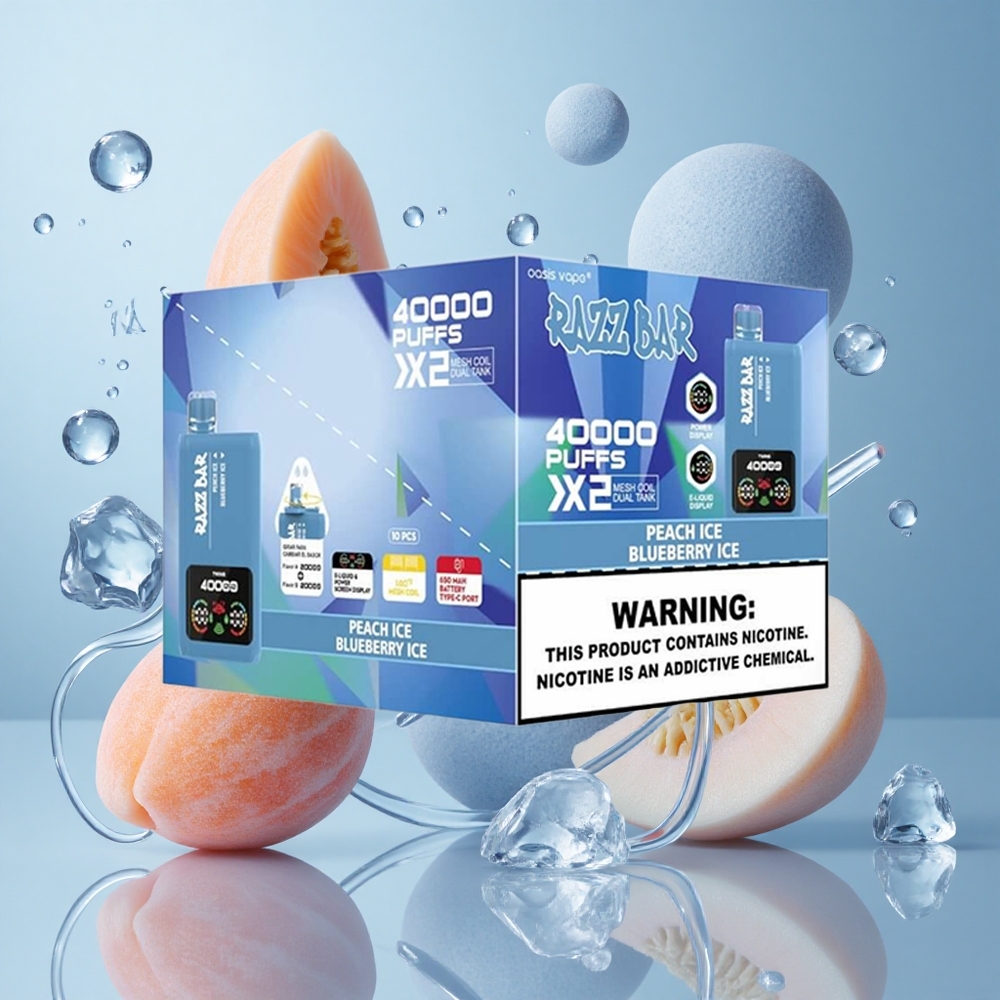 Razz Bar 40000 Puffs Engangs Vape Fersken Is/Blåbær Is med 650 mAh Batteri