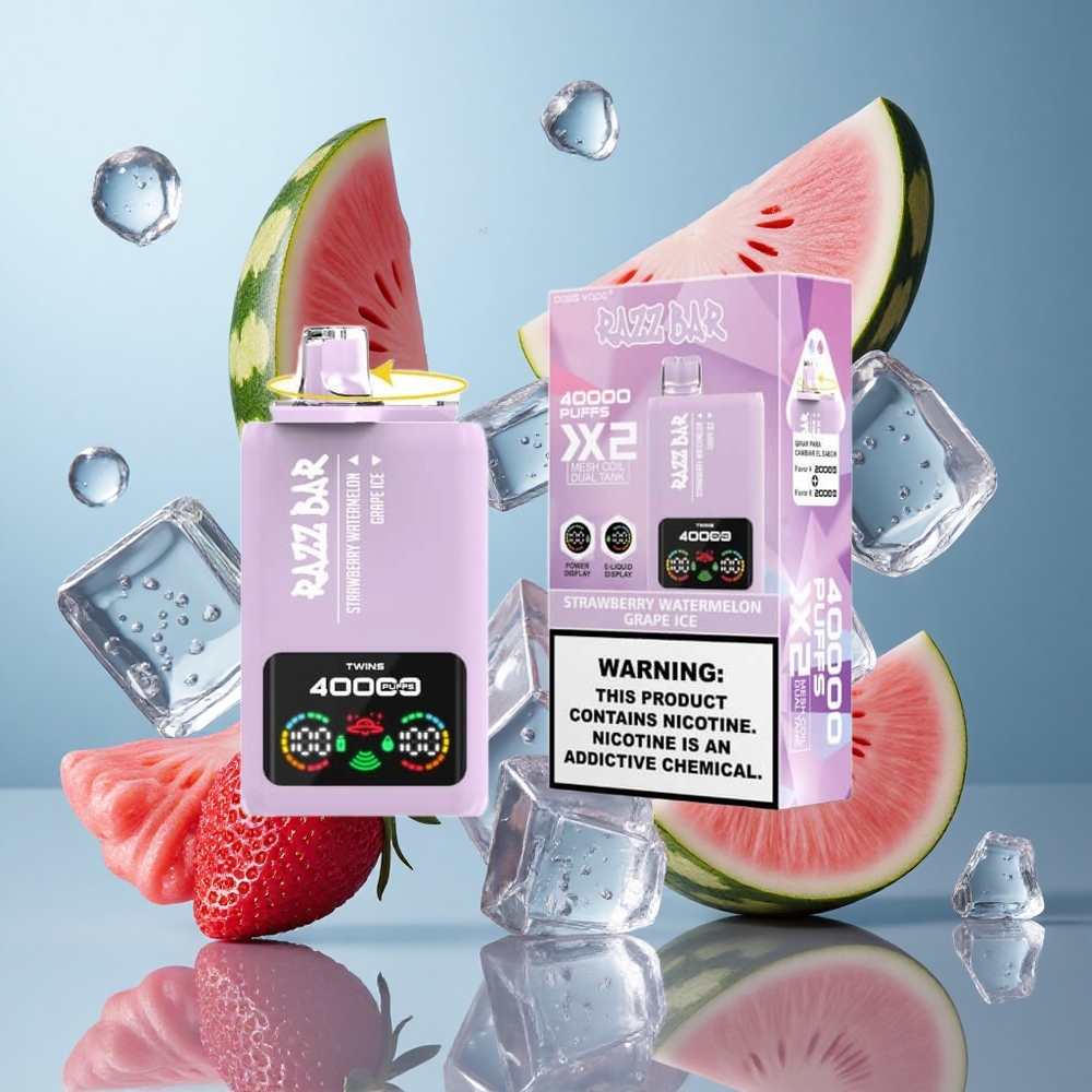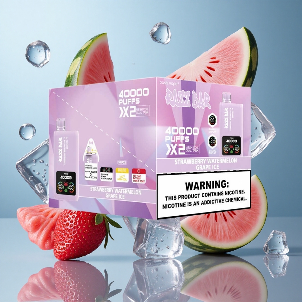 Razz Bar 40000 Puffs Engangs Vape Jordbær Vandmelon_Isdrue med 650 Mah Batteri