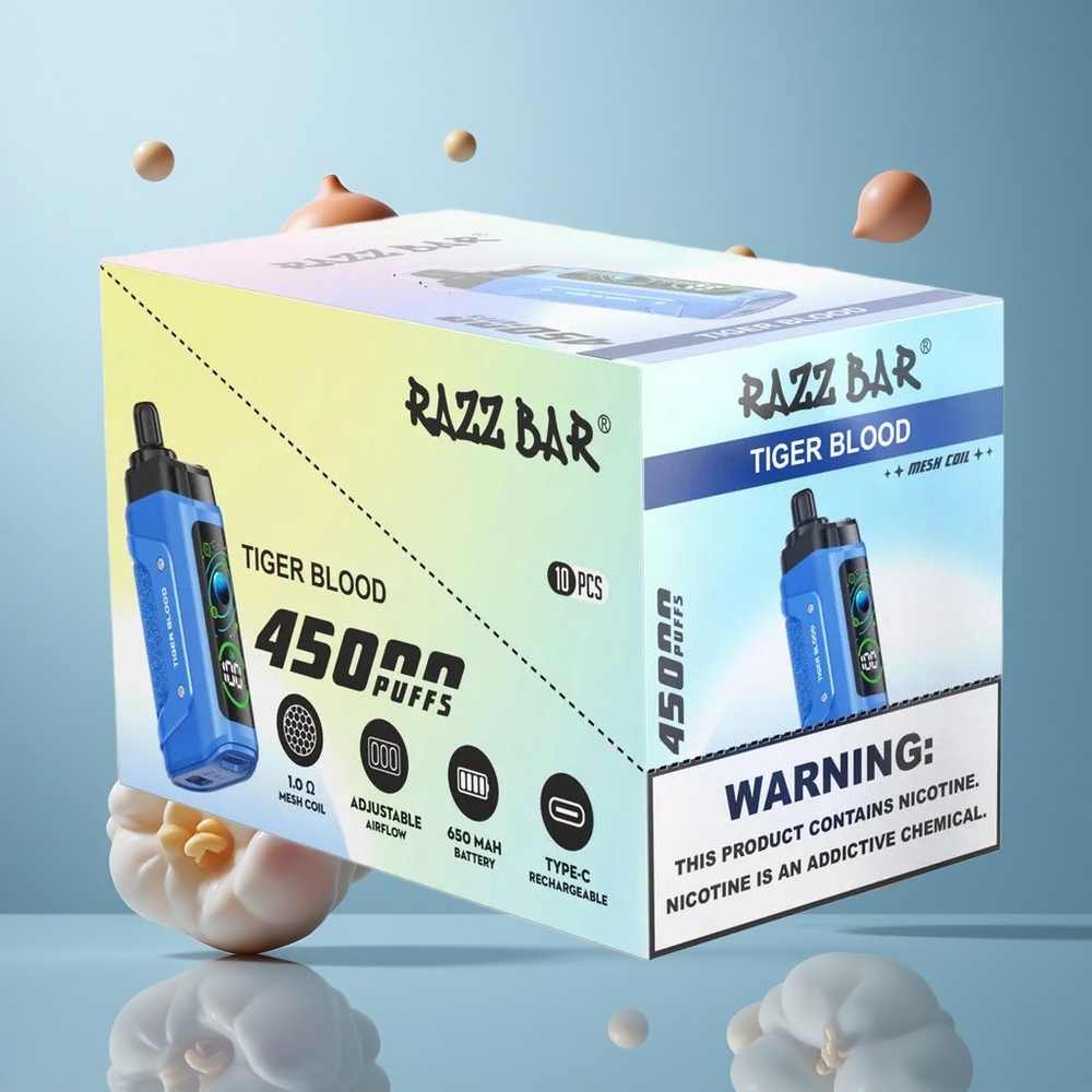 Razz Bar 45000 Puffs Engangs E-Cigaret Tiger Blod med Justerbar Luftgennemstrømning