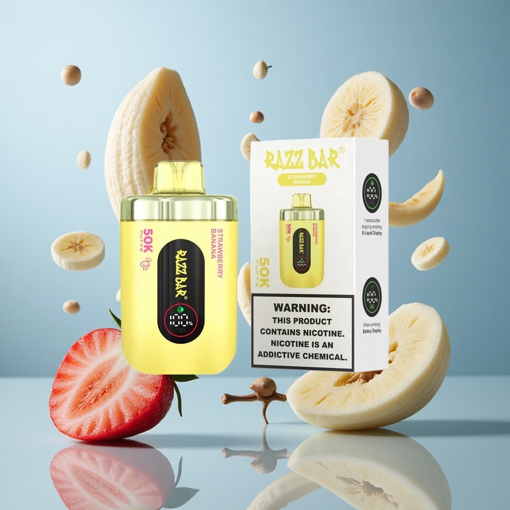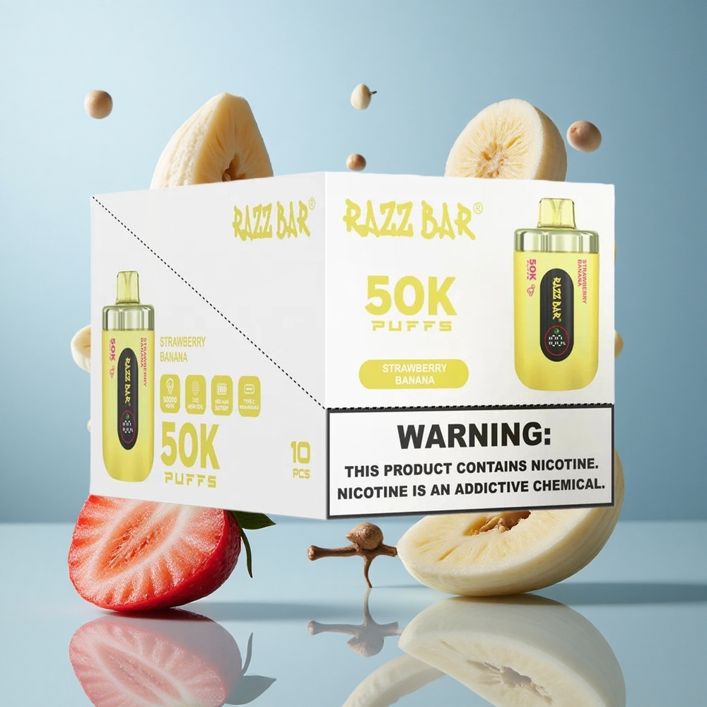 Razz Bar 50K Puffs Engangs Vape 650 Mah Batteri Jordbær Banan