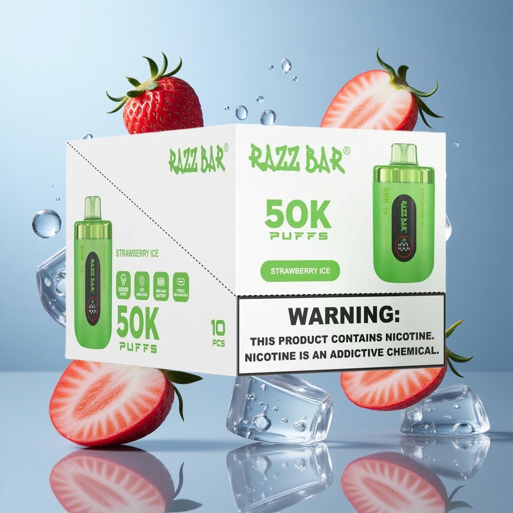 Razz Bar 50K Puffs Engangs Vape Jordbær Is med 50000 Puffs