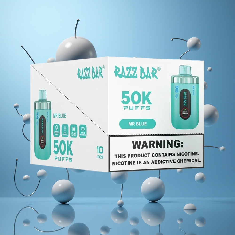 Razz Bar 50K Puffs Genanvendelig Vape Mr Blå Med Type-C Opladning