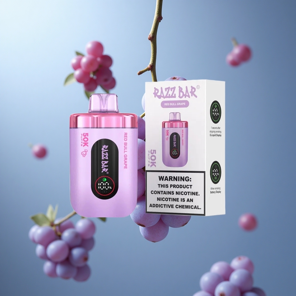 Razz Bar 50K Puffs Genbrugs E-Cigaret Type-C Opaladelse Red Bull Drue